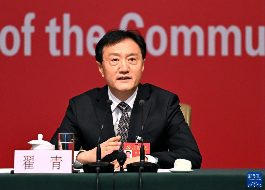 10月21日,中国共产党第二十次全国代表大会新闻中心举行记者招待会。生态环境部党组成员、副部长翟青围绕“建设人与自然和谐共生的美丽中国”主题与记者交流。