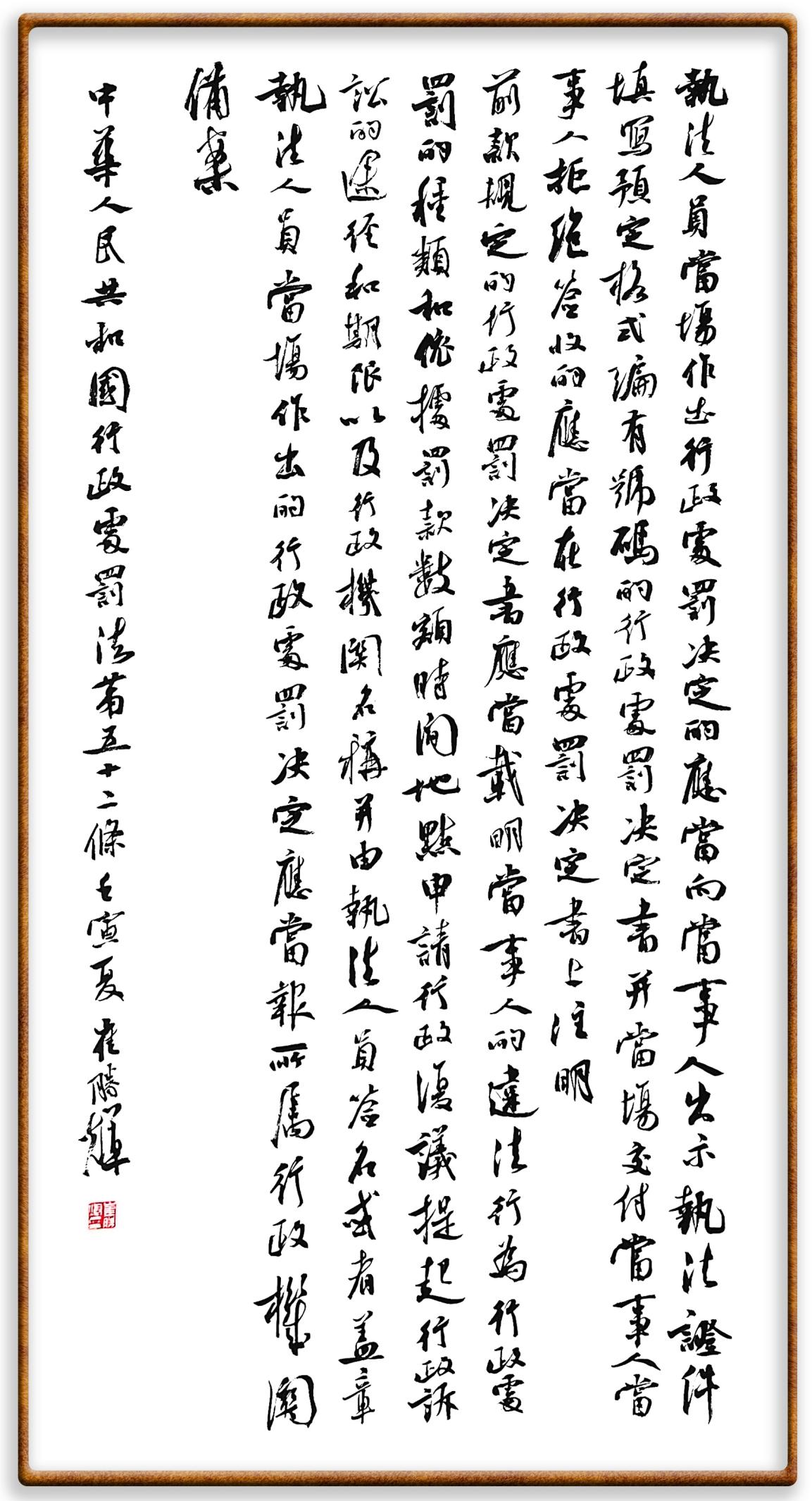 继《中华人民共和国民法典》《中华人民共和国土地管理法》《中华人民共和国土地管理法实施条例》《中华人民共和国法律援助法》之后,法治日报社联合北京市司法局、北京书法家协会,将笔端对准《中华人民共和国宪法》和《中华人民共和国行政处罚法》。