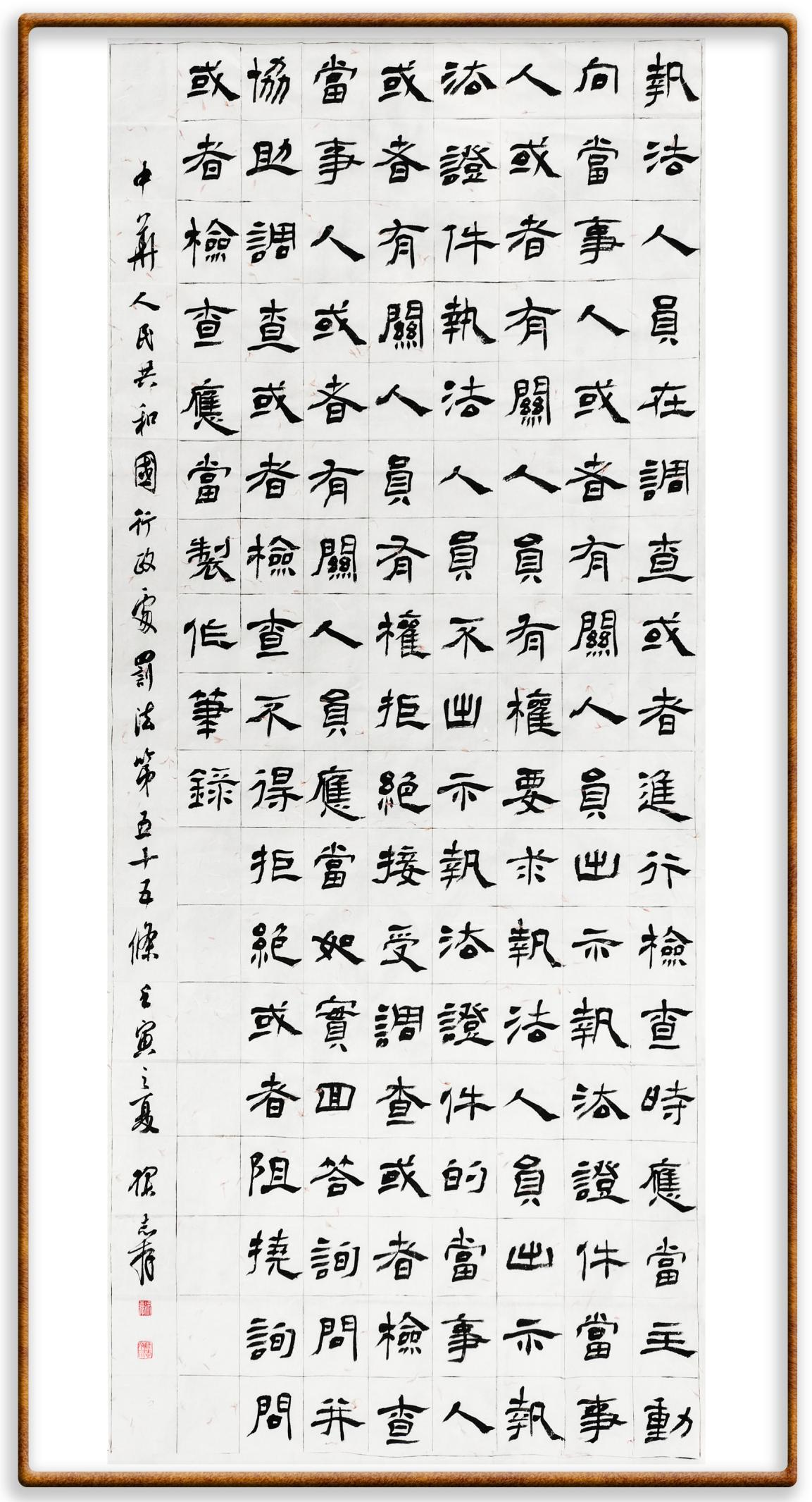继《中华人民共和国民法典》《中华人民共和国土地管理法》《中华人民共和国土地管理法实施条例》《中华人民共和国法律援助法》之后,法治日报社联合北京市司法局、北京书法家协会,将笔端对准《中华人民共和国宪法》和《中华人民共和国行政处罚法》。