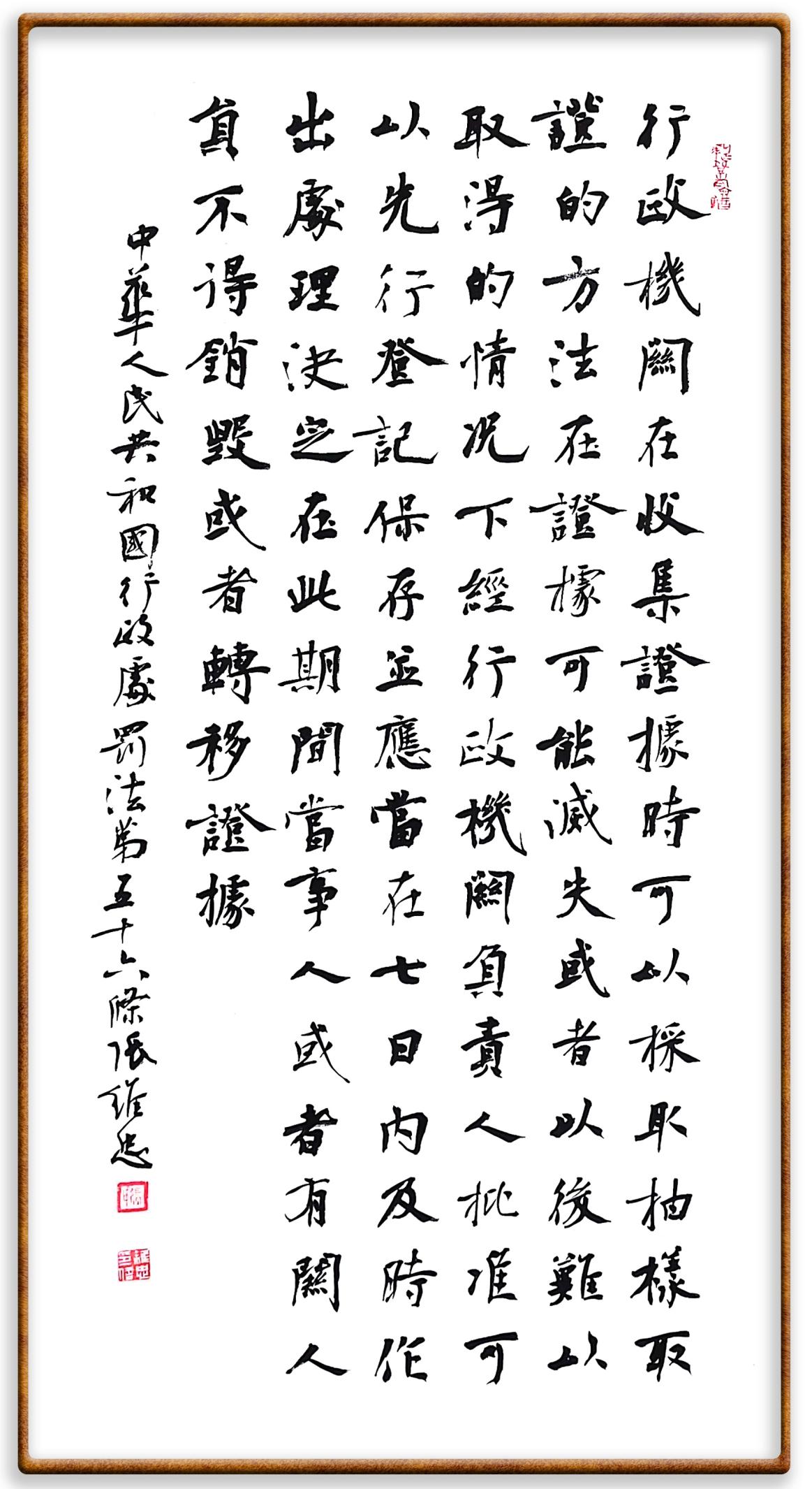 继《中华人民共和国民法典》《中华人民共和国土地管理法》《中华人民共和国土地管理法实施条例》《中华人民共和国法律援助法》之后,法治日报社联合北京市司法局、北京书法家协会,将笔端对准《中华人民共和国宪法》和《中华人民共和国行政处罚法》。