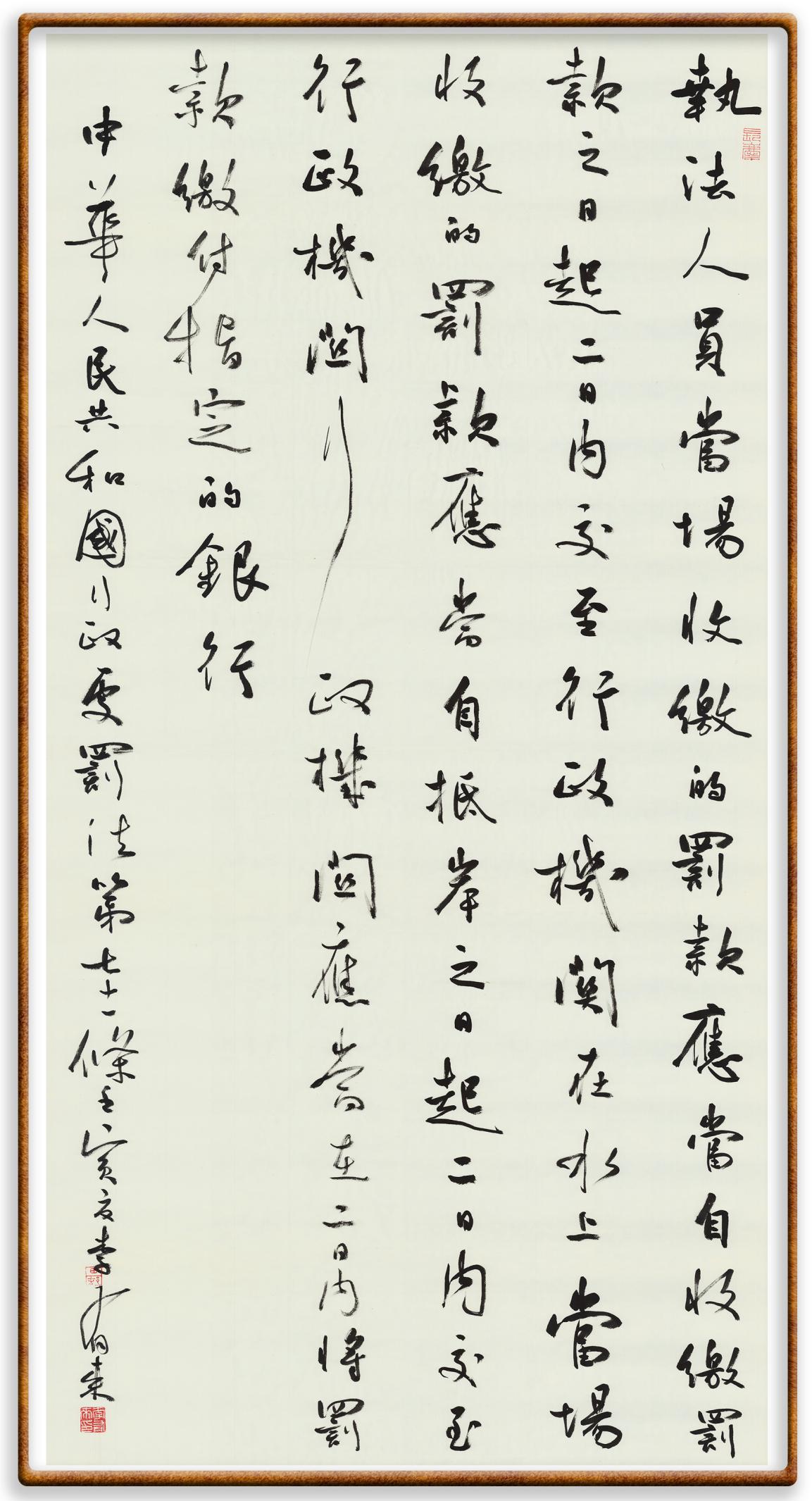 继《中华人民共和国民法典》《中华人民共和国土地管理法》《中华人民共和国土地管理法实施条例》《中华人民共和国法律援助法》之后,法治日报社联合北京市司法局、北京书法家协会,将笔端对准《中华人民共和国宪法》和《中华人民共和国行政处罚法》。
