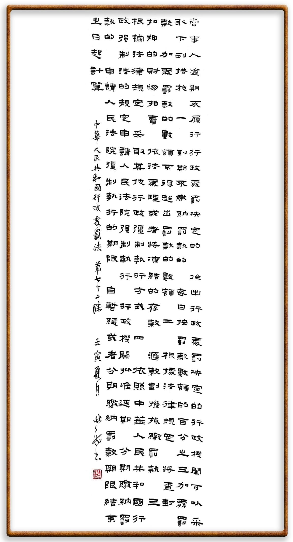 继《中华人民共和国民法典》《中华人民共和国土地管理法》《中华人民共和国土地管理法实施条例》《中华人民共和国法律援助法》之后,法治日报社联合北京市司法局、北京书法家协会,将笔端对准《中华人民共和国宪法》和《中华人民共和国行政处罚法》。
