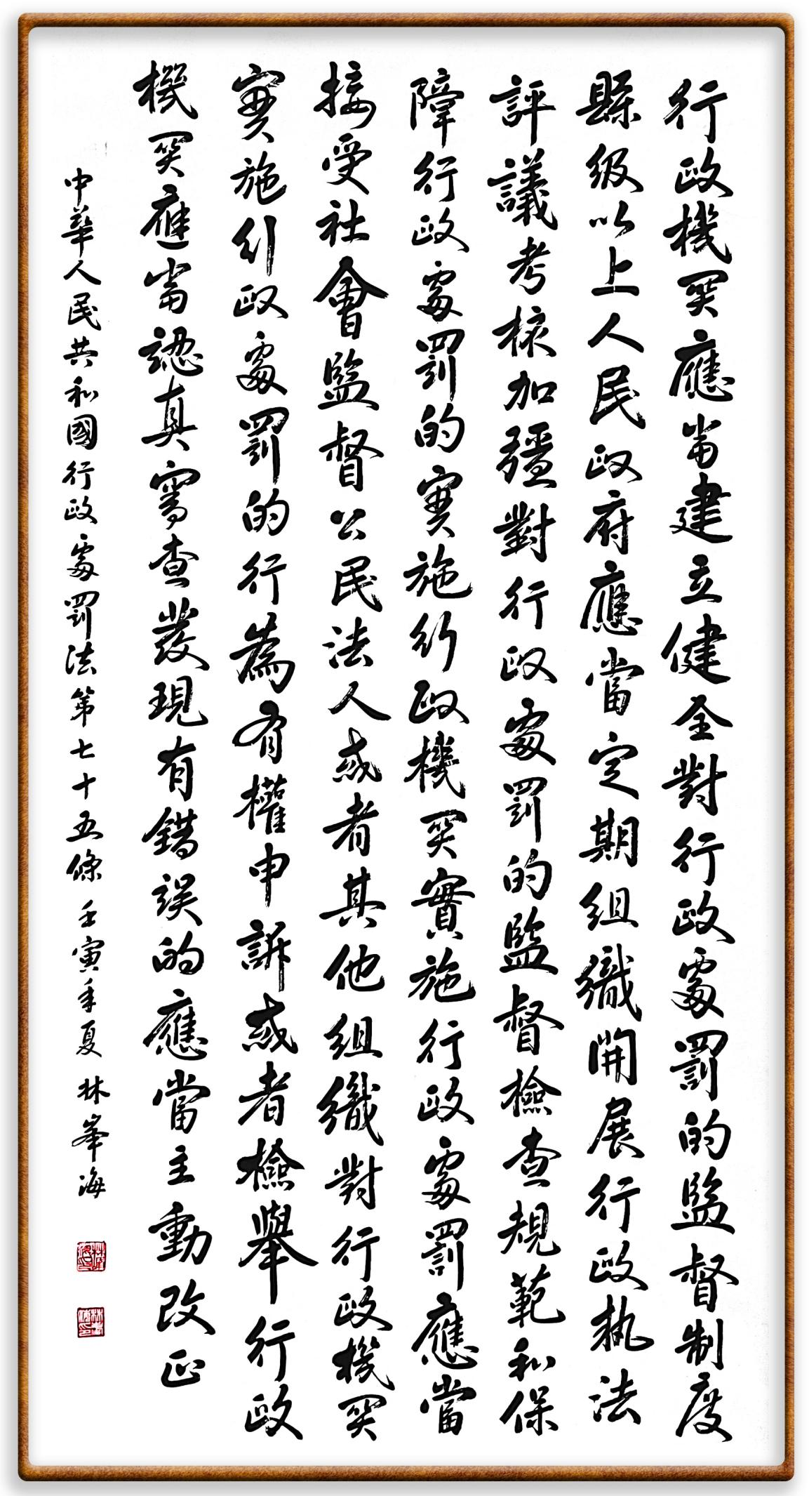 继《中华人民共和国民法典》《中华人民共和国土地管理法》《中华人民共和国土地管理法实施条例》《中华人民共和国法律援助法》之后,法治日报社联合北京市司法局、北京书法家协会,将笔端对准《中华人民共和国宪法》和《中华人民共和国行政处罚法》。