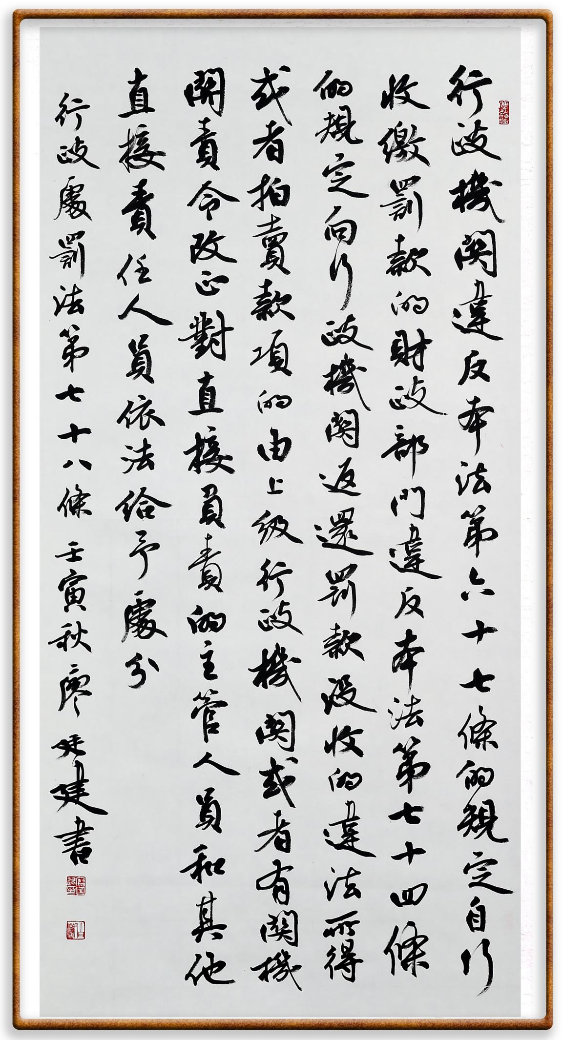 继《中华人民共和国民法典》《中华人民共和国土地管理法》《中华人民共和国土地管理法实施条例》《中华人民共和国法律援助法》之后,法治日报社联合北京市司法局、北京书法家协会,将笔端对准《中华人民共和国宪法》和《中华人民共和国行政处罚法》。