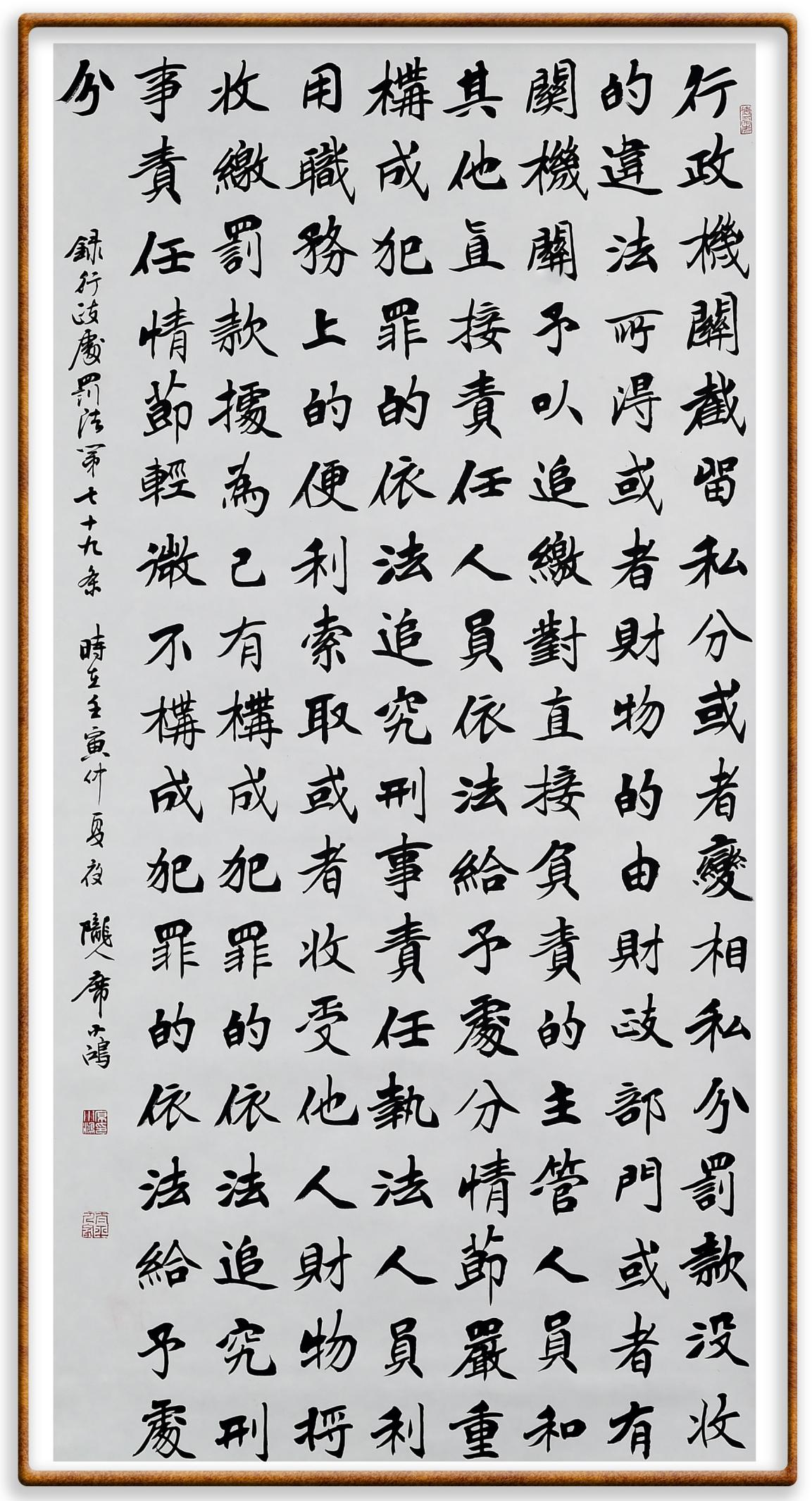 继《中华人民共和国民法典》《中华人民共和国土地管理法》《中华人民共和国土地管理法实施条例》《中华人民共和国法律援助法》之后,法治日报社联合北京市司法局、北京书法家协会,将笔端对准《中华人民共和国宪法》和《中华人民共和国行政处罚法》。