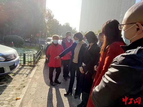 政协委员与“小巷管家”现场察看小区停车状况。施院生 摄