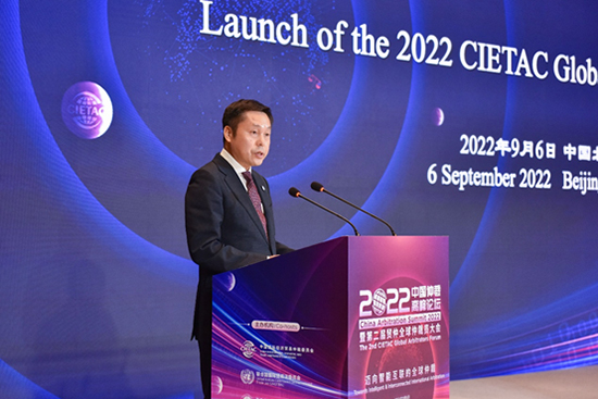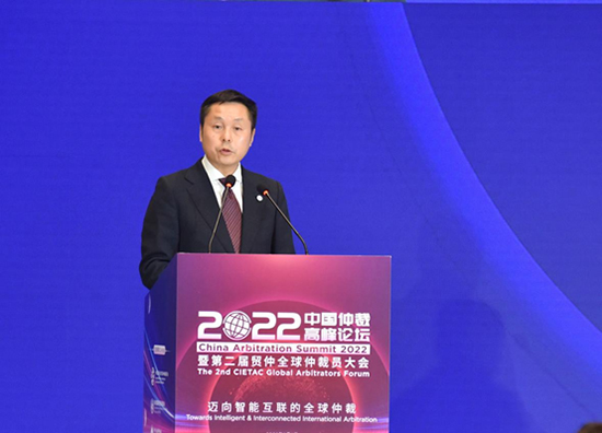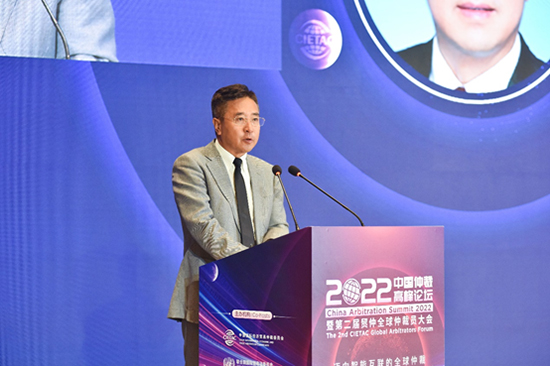 (贸仲副主任兼秘书长王承杰主持《2022贸仲全球仲裁员倡议》发布仪式)