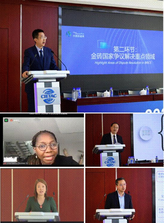 仲裁论坛第二环节由对外经贸大学刘彤教授主持并开场发言,资深大律师、南非金砖仲裁专家委员会主席Lind Nkosi-Thomas SC女士,中国铝业集团有限公司总法律顾问胡振杰先生、丝路基金的总法律顾问曹晖女士、联想集团副总裁、总法律顾问高唤栋先生分别就建立金砖国家仲裁中心和联合机制的必要性和可行性、疫情下全球争议解决面临的挑战、大型跨国企业选择争议解决方式的考量等方面进行了分享,提出建立高质量的争端解决机制对促进金砖国家贸易投资发展意义深远,国家间互联互通、携手共进对促进国际仲裁发展至关重要。