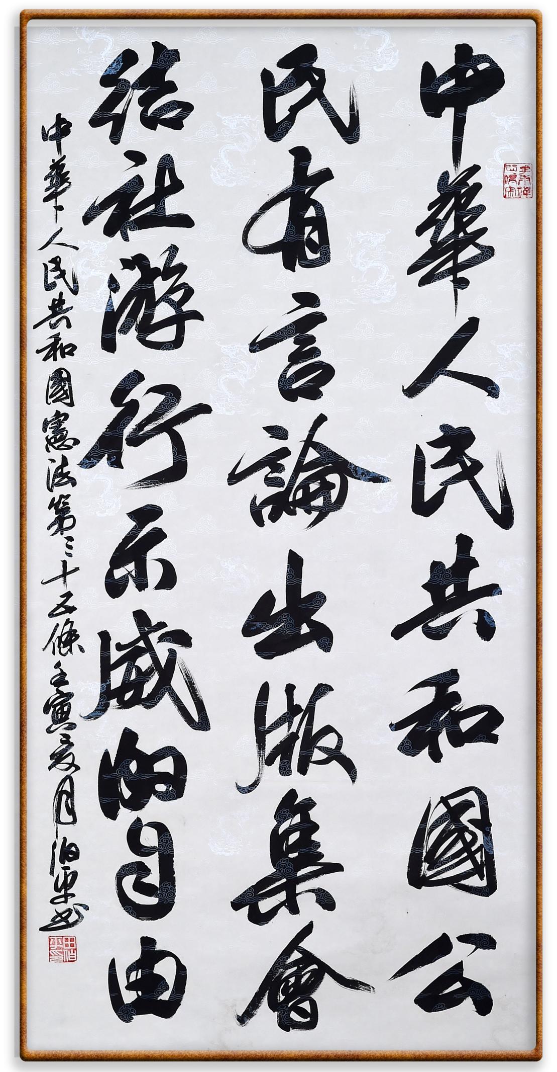 继《中华人民共和国民法典》《中华人民共和国土地管理法》《中华人民共和国土地管理法实施条例》《中华人民共和国法律援助法》之后,法治日报社联合北京市司法局、北京书法家协会,将笔端对准《中华人民共和国宪法》和《中华人民共和国行政处罚法》。