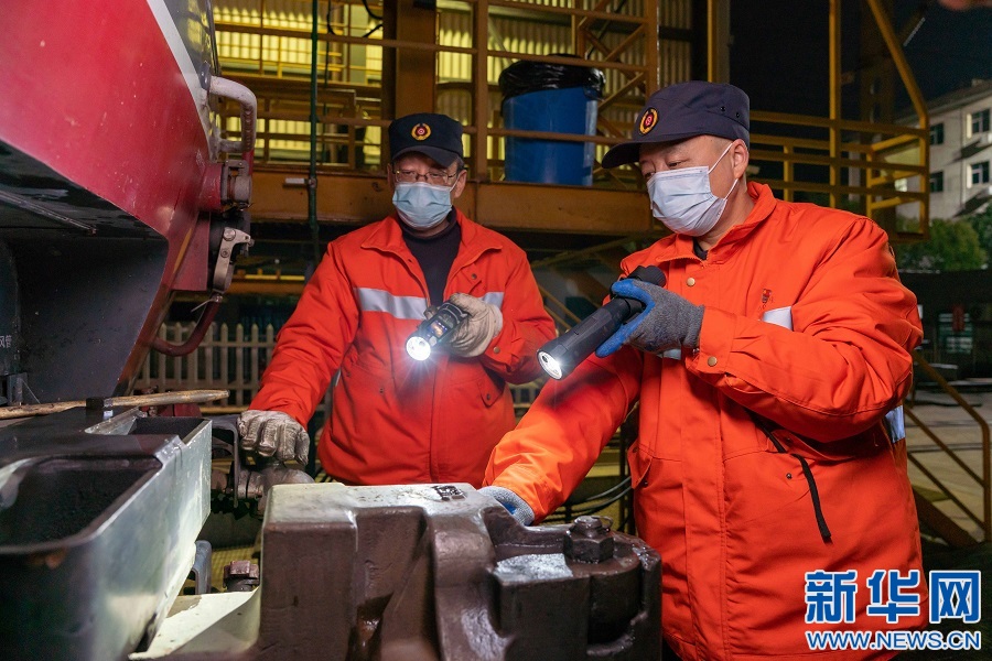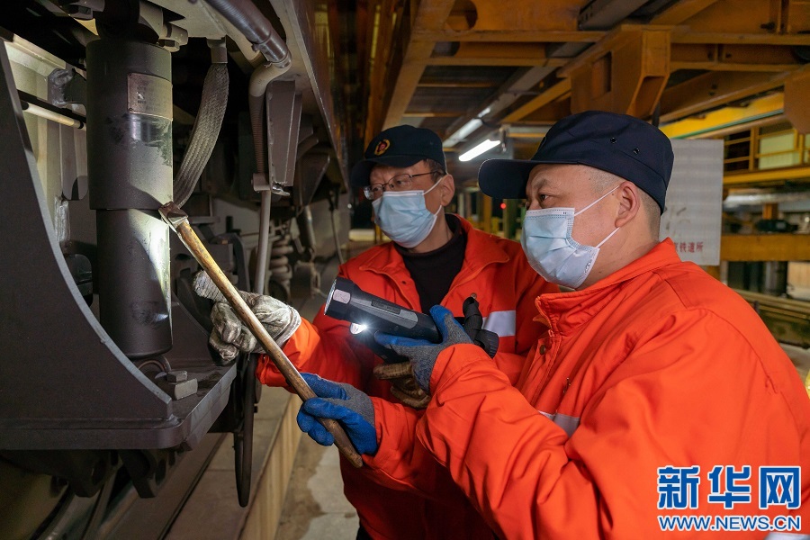 春运期间是王德军与王德华两兄弟最忙碌的时候。弟弟王德军负责检查机车走行部,哥哥王德华则是主修。每台机车入库前,王德军就手拿检点锤与手电筒,早早地站在检车台位边,待机车停稳妥后,他便挥动检点锤锤检螺丝,“砰砰砰”的清脆声响伴随着整备场机车启动的轰鸣声,就像是在奏响着悦耳的“交响乐”。机车走行部部件经过长时间使用,容易出现螺丝松脱,必须通过检点锤敲击螺丝发出的声响来判断是否松动,如果哪个“音符”声音不对了,王德华就要马上过来进行修复检验,经过“调音”后,王德华再用检点锤敲击螺丝。两兄弟在一起工作近二十载,为机车“调音”,保障旅客出行安全。(赵磊)