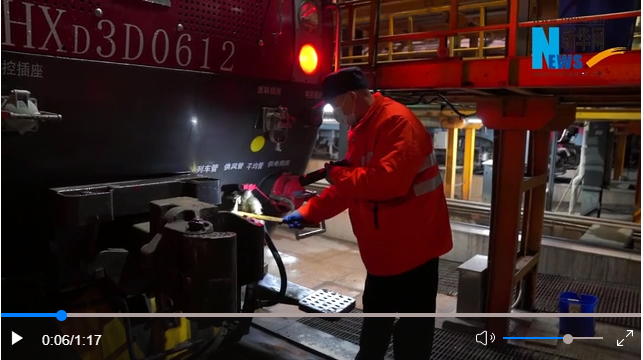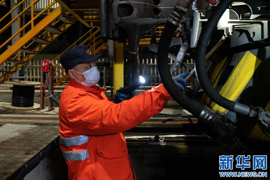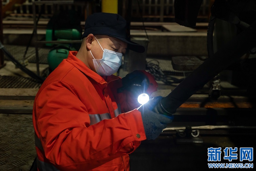 王德军正在对机车进行检修。新华网发 赵磊 摄