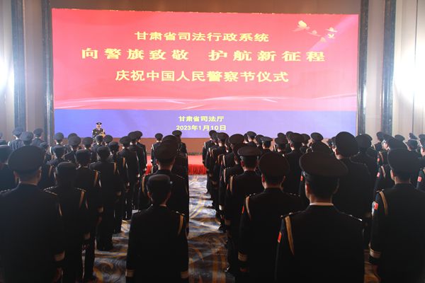 1月10日,甘肃省司法行政系统在兰州举行“向警旗致敬 护航新征程”第三个“中国人民警察节庆”祝仪式,省司法厅机关相关局处室、省监狱管理局、省戒毒管理局和基层监所民警代表参加了庆祝仪式。