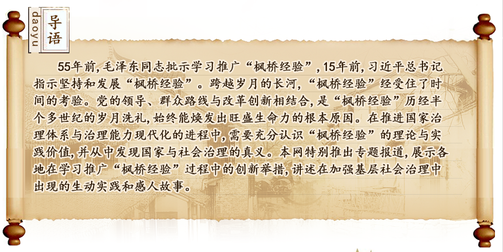 “枫桥经验”既植根于中国特色社会主义乡村自治、德治、法治实践,也源自于......【更多】