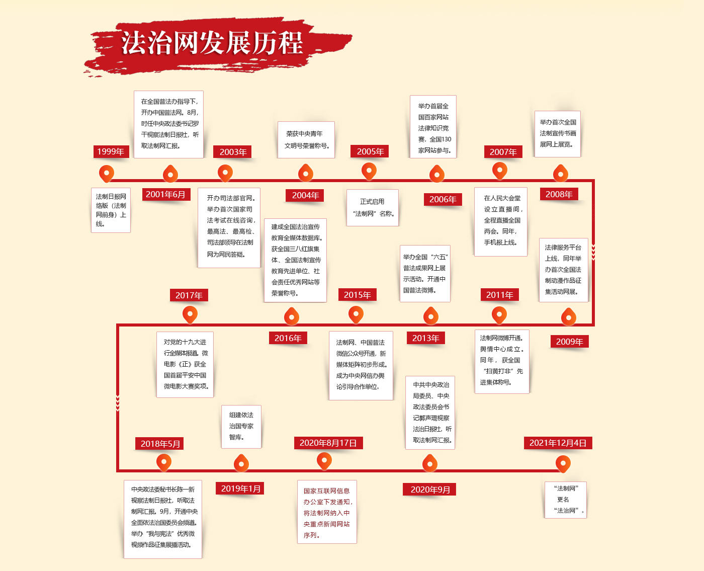 坚韧地,笃定地,攥紧拳头,挺直胸膛,我们即将走过艰难复苏的2021年。 摸索着,垦耘着,眼底含笑,心中有光,我们勇敢迈向赓续复兴的2022年。 活水源流随处满,东风花柳逐时新。 新的时节,新的目标,新的使命,新的担当,在第八个国家宪法日到来之际,我们也迎来了属于自己新的名字——“法治网”。 从“法制网”到“法治网”,一字之更,折射了二十余年间法治的进步、时代的荣光。 1999年,时代的列车即将把我们送入一个崭新的世纪,怀揣着普及法律知识、传播法治理念的殷切梦想,诞生了国内最具权威性和影响力的法治类新闻网站——法制网。 22年间,我们见证了“国之权衡也,时之准绳也”的科学立法;见证了“有法不行,与无法同”的严格执法;见证了“法分明,则贤不得夺不肖”的公正司法;见证了“人法相维,上安下顺”的全民守法...[详细]