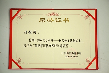 法治网《70年法治回眸--我们的自信在这里》被评为“2019年度优秀网评议题设置”