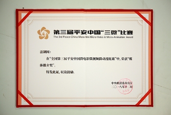 法治网在“全国第三届平安中国微电影微视频微动漫比赛”中荣获“媒体推介奖”