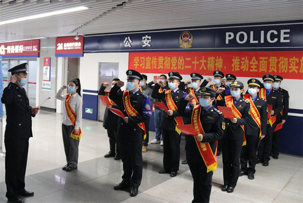为深入学习宣传贯彻落实党的二十大精神和习近平法治思想,大力弘扬宪法精神、维护宪法权威,扎实推进社会主义法治文化建设,纪念现行宪法公布实施四十周年,提升广大居民群众崇尚宪法、遵守宪法、运用宪法的能力和意识,12月5日上午,青岛市普法办、市法学会、市公安局法制支队、市公安局地铁分局和青岛地铁集团,联合举行以“学习宣传贯彻党的二十大精神 推动全面贯彻实施宪法”为主题的“宪法宣传周”普法宣传系列活动。活动在青岛地铁3号线五四广场站拉开帷幕。