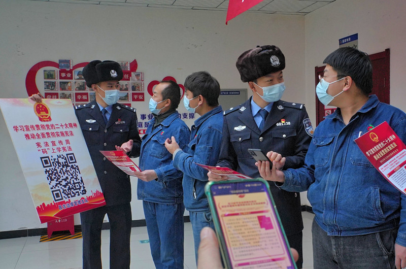 连日来,新疆出入境边防检查总站昌吉边境管理支队老君庙边境派出所组织民警深入边境辖区企业开展“深入贯彻党的二十大精神 ‘码’上‘云端’学宪法”宪法宣传周活动。