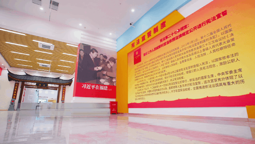 据了解,当天开馆的福建省宪法宣传教育馆共分为八个展厅,除了展示了现行宪法实施以来的重大法治进程和福建省践行宪法精神的法治成效等,还专门设置了习近平法治思想展厅,主要介绍习近平法治思想的核心内容、习近平法治思想在福建的孕育与实践及习近平同志在福建的法治故事。